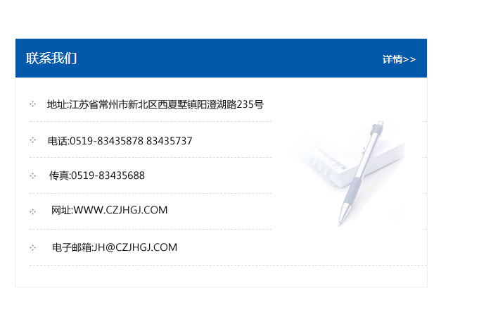 傳真:0519-83435688    郵編:213135    網址:WWW.czjhgj_com.focusep.com    電子郵箱:JH@czjhgj_com.focusep.com